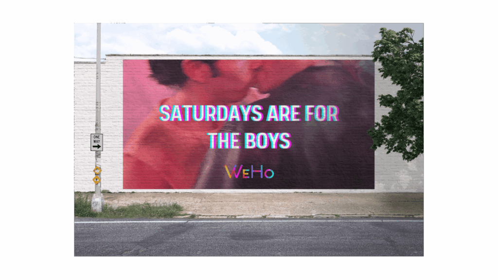 This wallscape advertisement reminds WeHo club goers and would be club goers what WeHo is all about — being open and safe to be queer. WeHo is a space where queer people come together to be with their own community.